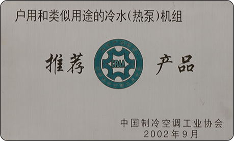 2002年9月,集團(tuán)“戶(hù)用和類(lèi)似用途的冷水熱泵機(jī)組”被中國(guó)制冷空調(diào)工業(yè)協(xié)會(huì)評(píng)定為推薦產(chǎn)品。